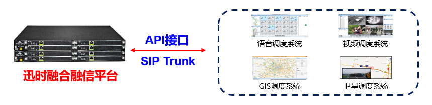 迅時融合通信平臺,通過各種網關設備實現與PSTN固話、手機、IMS通信平臺、數字集群對講系統等傳統通信網絡互聯,最大程度上保障通訊暢通。還可以通過SIP對接、API二次開發等方式,與軍隊的第三方系統,如指揮調度系統、視頻監控系統等融合,做到“平戰結合”,提高軍隊的執行力。