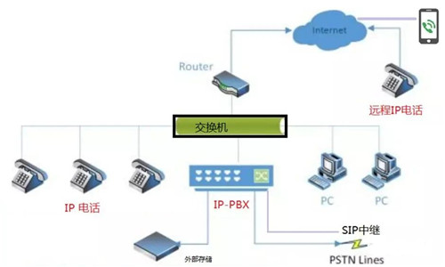 IP-PBX:基于ip網絡的交換機,使用TCP/IP協議,利用包交換的原理,在以太網上實現相同的功能。