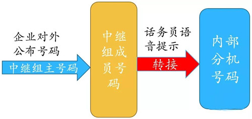 有多條外線可以做成中繼組,對外公布一個號碼,多人同時撥打這一個號,跳轉到其它號碼。