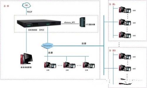 IP遠端坐席:用于銀行等大型企業,這種企業在全國各地都有分支機構,這些分支機構之間相互撥打電話如果通過局端,則會無形中加大公司的成本,而且也不能用于用戶呼入后的電話轉接。IP遠端坐席是將電話連接到互聯網上,這樣通話就是通過互聯網,而不是通過通訊公司,不存在通訊費用。也可稱為:網絡電話。