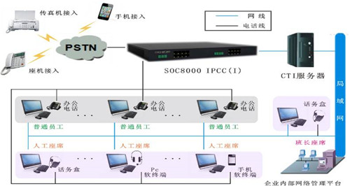 CTI(Computer Telephony Integration,計算機電話集成):操作PBX與坐席端的互聯調度系統。