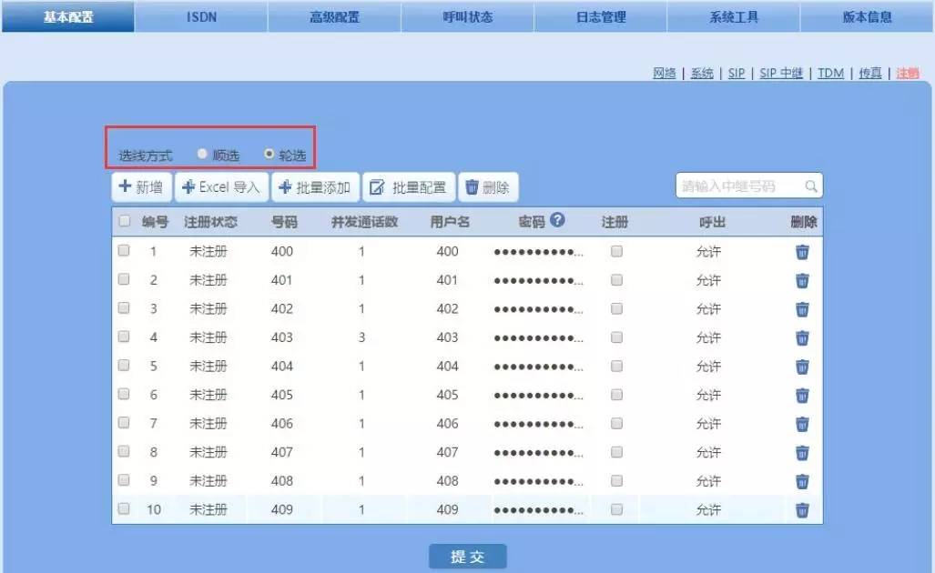 MX100G數字中繼網關的最新軟件版本V 2.1.5.106,將支持多SIP賬號注冊,最大可配置512條SIP中繼。