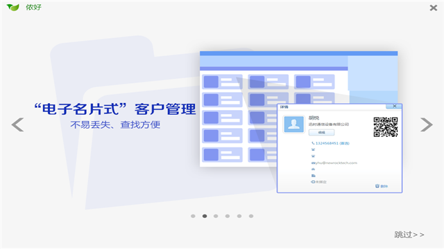 點擊通信錄上的客戶“名片”按鈕即可方便地撥打電話,同時支持對“名片”的智能化快捷查詢。